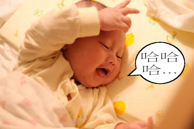 8/9Ryan這天很好睡, 睡到近中午還沒醒來..快到喝奶時間, 自動就醒了今天起來心情不錯喔~好像還很開心...然後..突然想到什麼事情開始大笑笑個不停~^^"真是太好笑啦!! 笑到眼淚直流, 乾脆用手遮著繼續笑~笑完了, 繼續吃手指難道剛剛就是笑著要吃手指了嗎?不知道Ryan想到什麼好笑的事情等他長大一點再來問他好了...^^